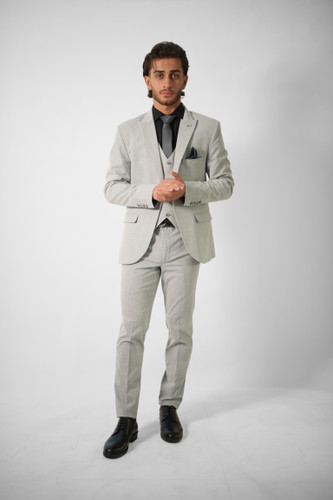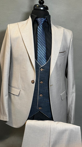 ست سه تیکه کت شلوار جلیقه بزیاق طوسی روشنناموجود
