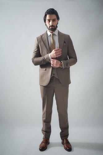 ست سه تیکه کت شلوار جلیقه کاردین پلاس کرم مدل 228ناموجود