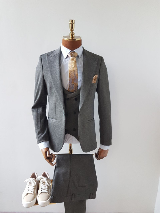 ست سه تیکه کت شلوار جلیقه کاردین پلاس سبز سدری مدل 224