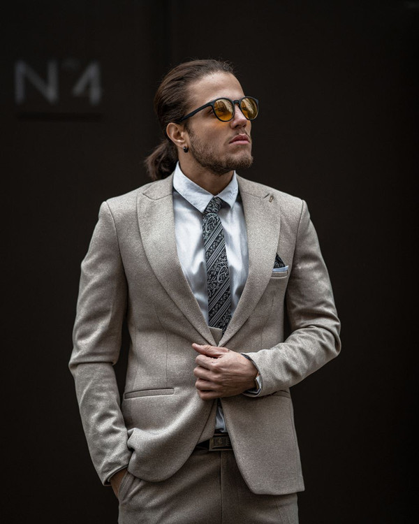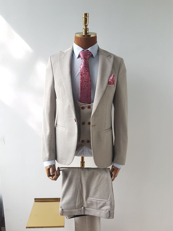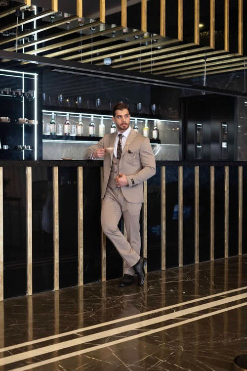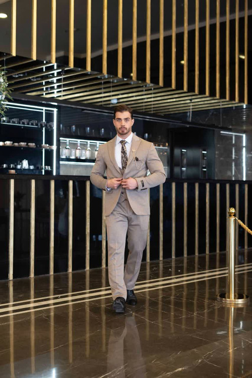 ست سه تیکه کت شلوار جلیقه کاردین پلاس کرم