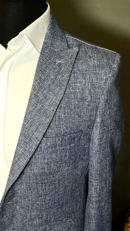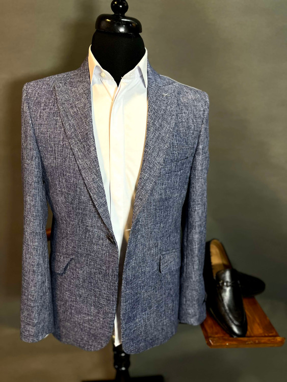 کت تک مردانه مدل کتان آبی جیب پاکتی