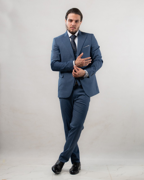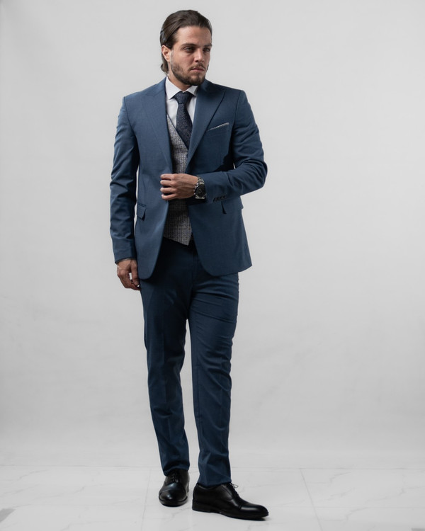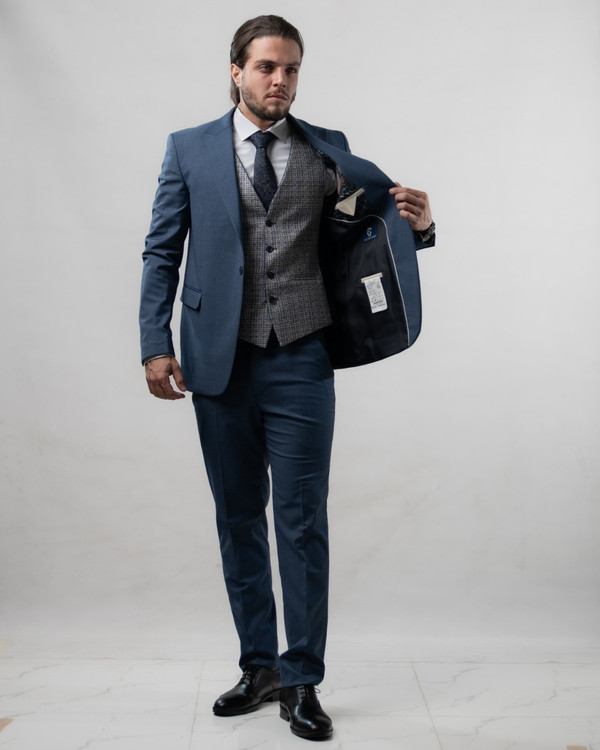 ست کت و شلوار جلیقه دبل فیس آبی آلتین کش