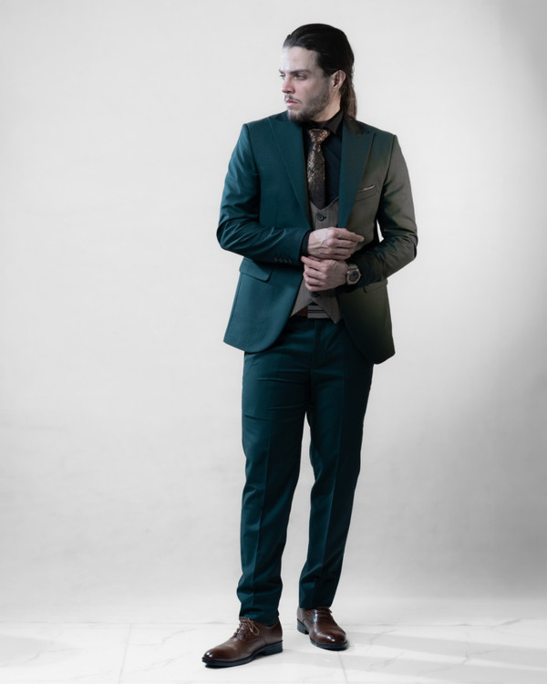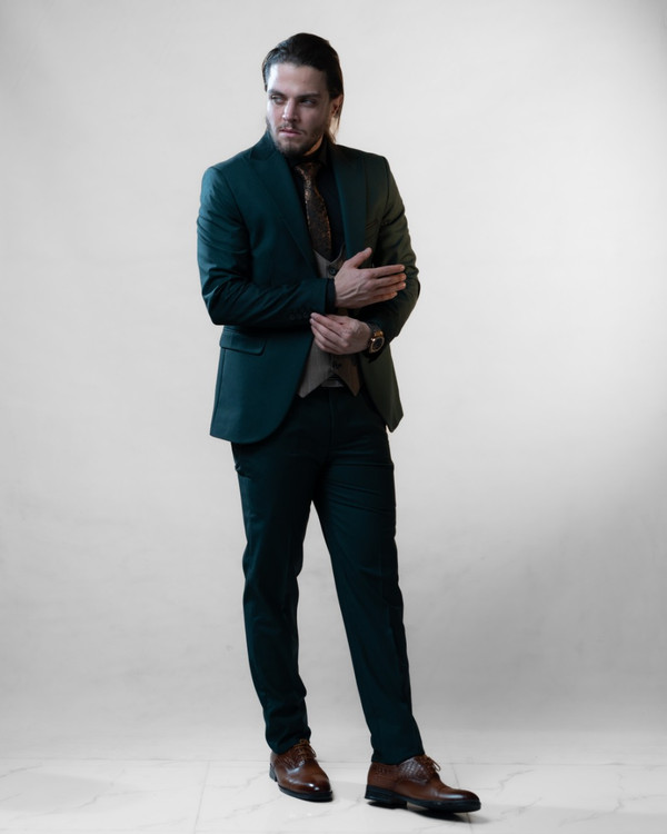 ست کت و شلوار جلیقه دبل فیس آلتین کش سبز کد ۳۱۹