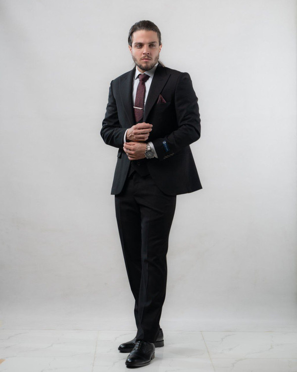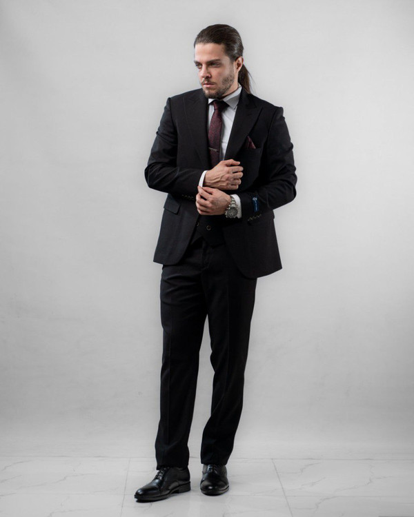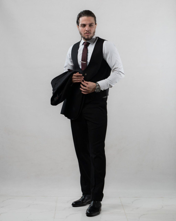 ست سه تیکه کت شلوار جلیقه مطهری مشکی مدل 765
