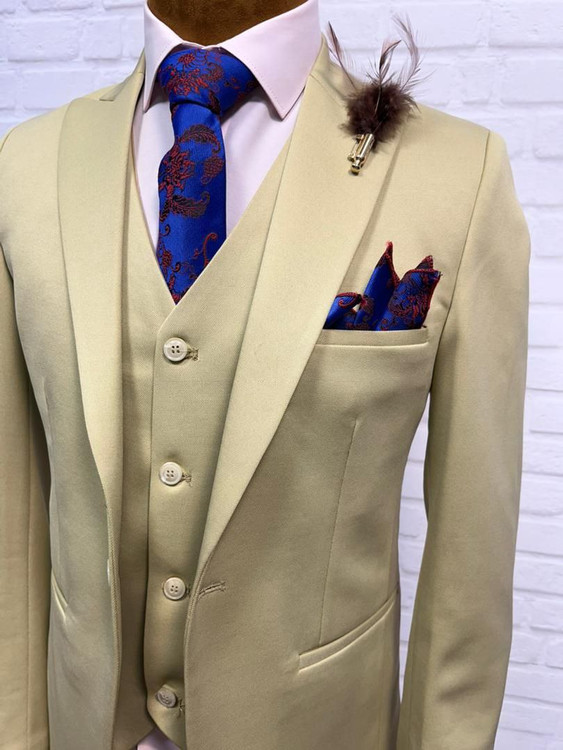 ست سه تیکه کت شلوار جلیقه کاردین پلاس کرم مدل 228