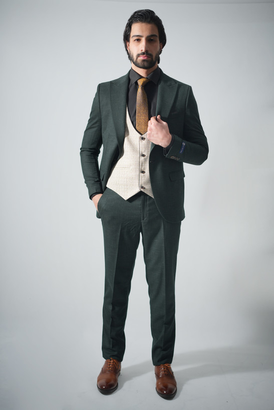 ست سه تیکه کت و شلوار و جلیقه دبل فیس رایان سبز
