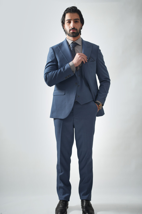 ست سه تیکه کت شلوار جلیقه مطهری آبی