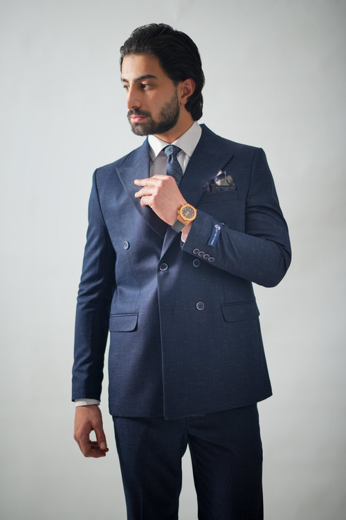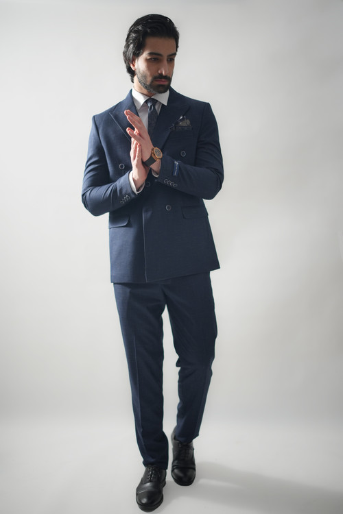 کت و شلوار دبل برست رایان سرمه ای