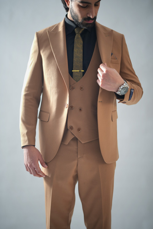 ست سه تیکه کت شلوار جلیقه مطهری آجری