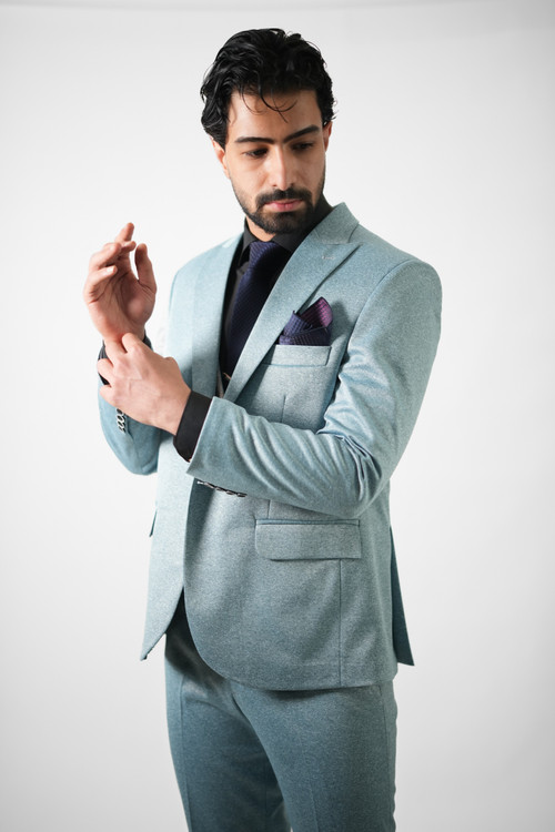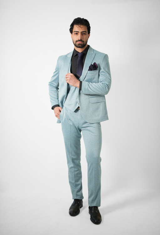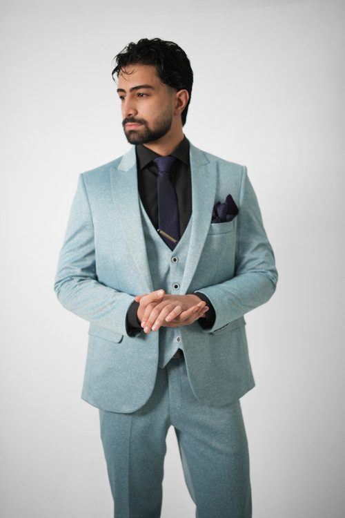 ست سه تیکه کت شلوار جلیقه دو رو کاردین پلاس مردانه آبی آسمانی