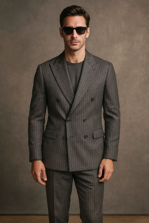 ست دو تیکه کت شلوار دبل برست دیپلمات زغالی