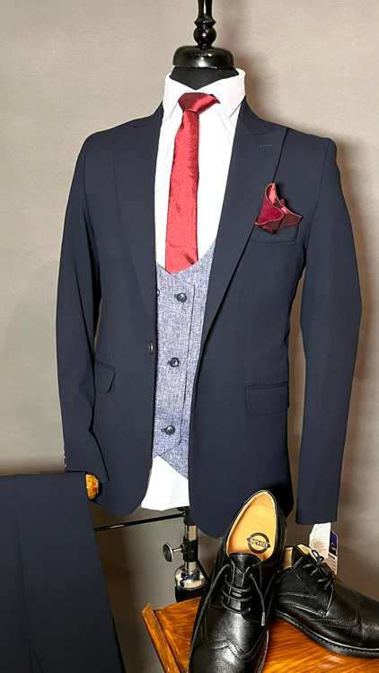 ست کت شلوار جلیقه دبل فیس شاندو سرمه ای