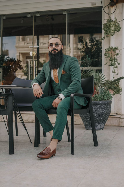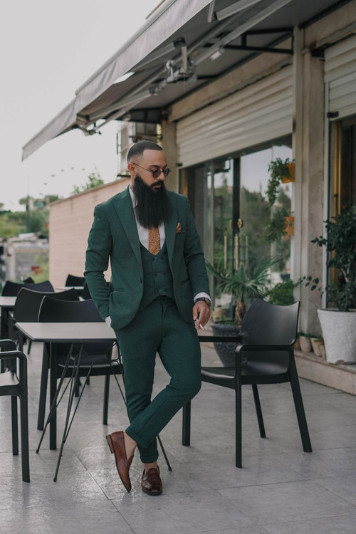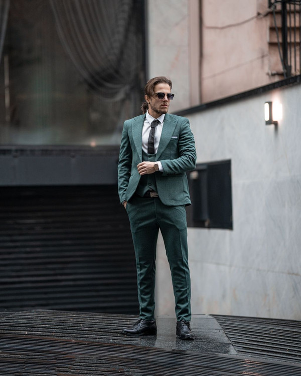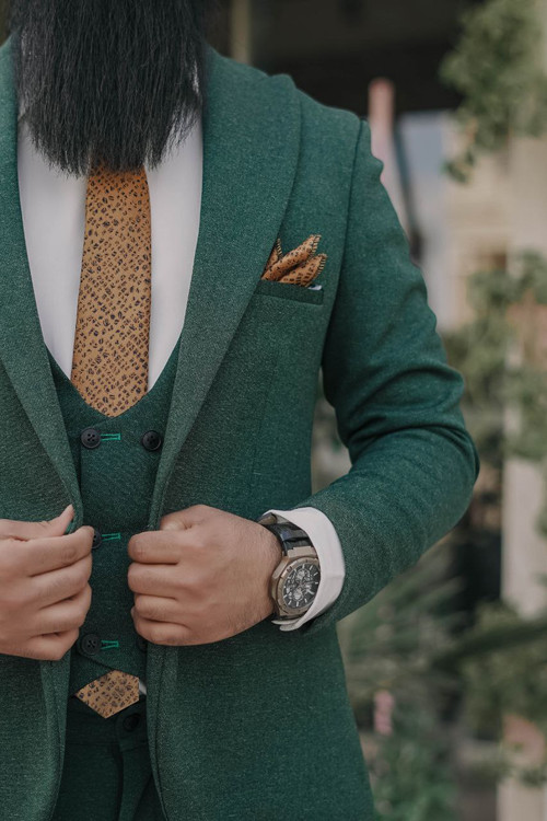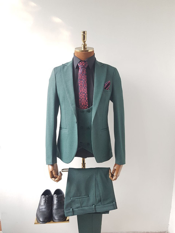 ست سه تیکه کت شلوار جلیقه دبل فیس کاردین پلاس سبز